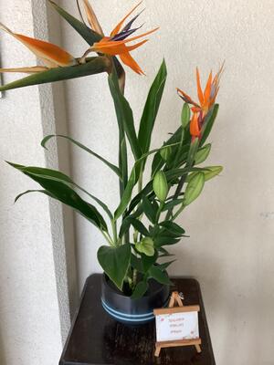 今月の花は、ゼンマイ、アルストロメリア、カーネーション、ランの葉です。アルストロメリアは、シックな感じの色合いで、落ち着いた様子となっています。