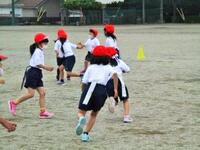 運動会に向けて、少しずつ練習を始めました。「気をつけ」「前へならえ」もばっちり!真っ直ぐに並べるようになってきました。