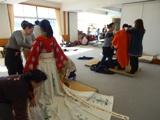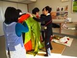 1月28日(木)の1時間目から4時間目までに6年生の平安時代の貴族の衣装を着る体験学習が行われました。本校では、毎年、この時期に県立博物館から衣装を借りて来て実施しています。