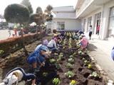 11月1日の昼休みに、環境整備ボランティア10名の皆様と環境委員会とボランティア委員会の児童が一緒に、花壇にパンジーを植える作業をしました。環境整備ボランティアの方々が、手際よく準備を進めてくださったおかげで、昼休みのうちに終了することができました。ありがとうございました。