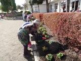 花壇の整備のために地域の方が来てくださいました。今回は来週の委員会でお花を植えるために花壇の整備をしてくださいました。これからも花いっぱいの学校をめざして活動します。御協力よろしくお願いいたします。その名も「今三フラワー隊」です。