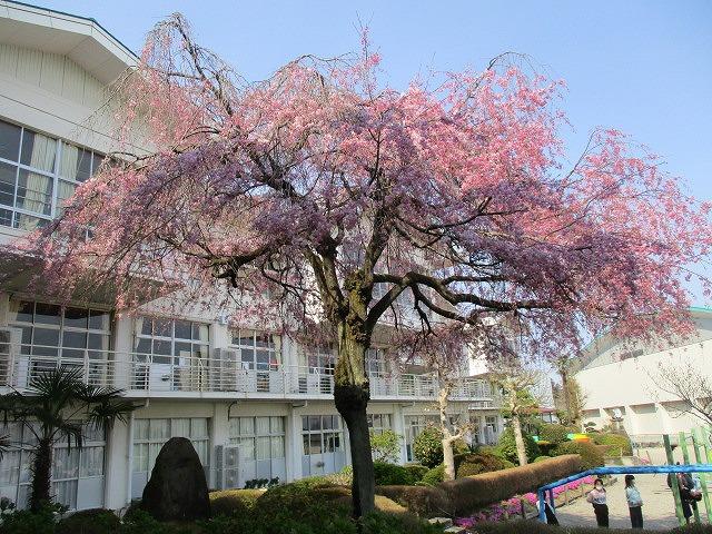 【校ていのしだれざくらもまんかいです!!】