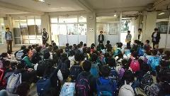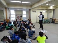 避難完了後、体育館でスクールサポーターの方のお話を聞きました。