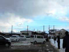 しかしながら、駐車スペースは東側半分ですので、自動車でのお迎えの際は、写真のように「前向き駐車」でお願いします。誘導の職員がいる場合は、その誘導に従って、一方通行に御協力ください。大変ぬかるんでおり、視界も悪いので、必ず保護者の方が付き添ってくださいますよう御協力よろしくお願いします。