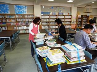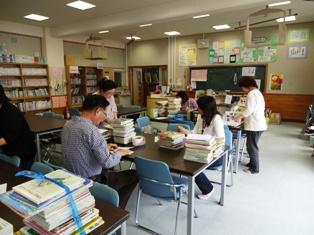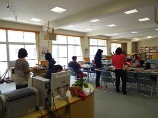 今日は、初めて図書室を利用する1年生のために、読み聞かせボランティア・図書整備ボランティアの方が11人来校しました。はじめに読み聞かせを聞き、その後、図書室の本の並び方やラベルの番号等の説明も聞いて、実際に本を借りるにはどうしたらよいかも教えていただきました。1年生も、これから図書室をどんどん利用することになると思います。ありがとうございました。