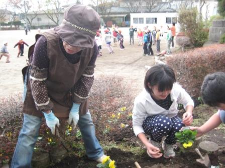 ボランティアの方と一緒に苗を植えました