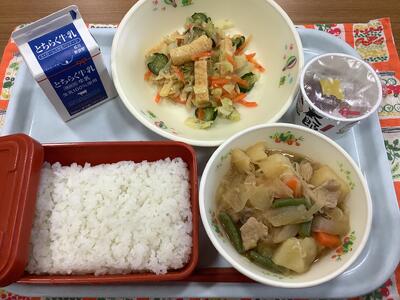 ごはん 牛乳 納豆 じゃこサラダ 肉じゃが