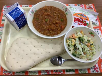 ナン 牛乳 キーマカレー コールスローサラダ アセロラゼリー