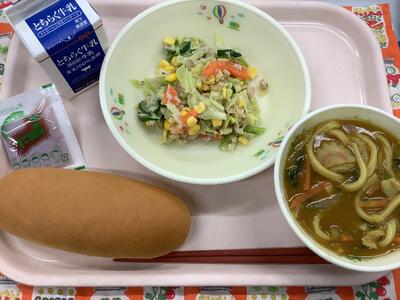 コッペパン とちあいかジャム 牛乳 カレーうどん ツナサラダ