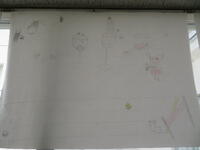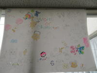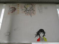図書室付近の廊下に、イラストクラブの作品を掲示していました。今年度のクラブ活動の時間を活用し、子供たちが一人一人思いを込めて制作しました。色づかいや表現に、それぞれの個性や工夫が表れた作品となっていました。