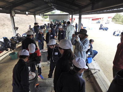 午後は塩づくり・つぼ焼き芋を行いました。海水から真っ白な塩ができたので、家に持ち帰ります!みんなで焼いた芋はおいしかったです。