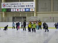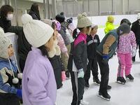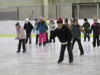 真っ白なリンクに、2年生の元気な声が響き渡りました! 今日は楽しみにしていたスケート教室です。