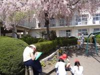 4年生は今、理科で春の生き物について勉強しています。今日は、校庭にある木を観察しました。みんな木の様子を真剣にスケッチしています。