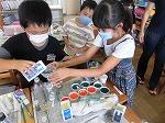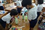 図工の単元「にじいろコレクション」で、絵の具を二色混ぜてどんな色になるか予想をしながら色水を作りました。