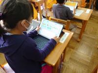 他にも算数や国語のアプリを使って授業の復習をしたり、授業に関する動画を見て理解を深めたりしています。1年生も少しずつ操作にも慣れ上手にタブレットを使えるようになってきました。