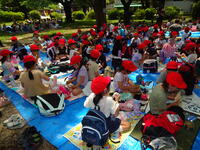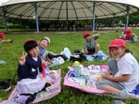 お昼のお弁当も、みんなでおいしく食べました。最後にアスレチックで元気に遊びました。