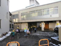 足下に気をつけ、歩くスピードにも留意して、寒さに負けず元気に登校する子供たちです。