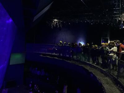 イワシの群れが音楽に合わせて泳ぎ回るショーが行われていました。二万匹もいるそうです。