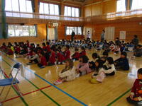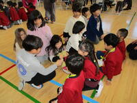 中央幼稚園、宝珠保育園、杉の子保育園の園児たちと1年生の交流学習がありました。1年生は、グループごとに小学校について説明をしたり、クイズを出したりしました。学校探検では、優しく手を繋いで声を掛けながら、校舎内を案内していました。1年生の成長を感じた交流学習でした。