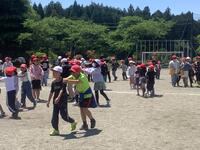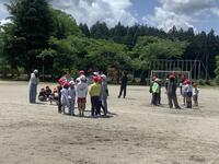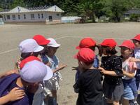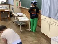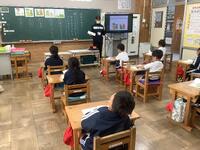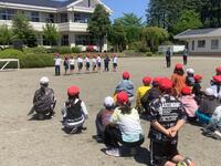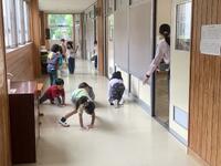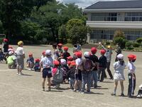 時間帯は業間です。普段通り休み時間を過ごしている中、「緊急地震速報」の音と放送が流れました。一度目の揺れが収まった後、余震が続く設定です。放送機器が使えず拡声器で指示がある等、緊張感ある訓練となりましたが、児童はしっかりと身を守る行動ができました。私たち職員も、実際にやってみて気付く点が多々ありました。