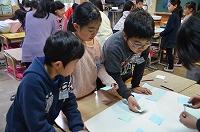 最後は教室の床に模造紙を広げて、クラスみんなでの作業になりました。