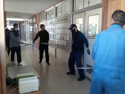 今市警察署・大沢駐在所より講師の先生をお招きして、学校に不審者が侵入した場合の避難訓練を行いました。