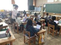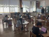 1分間、校舎は静まり返り、集中してタブレットに向かう子供たちの姿が見られました。