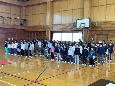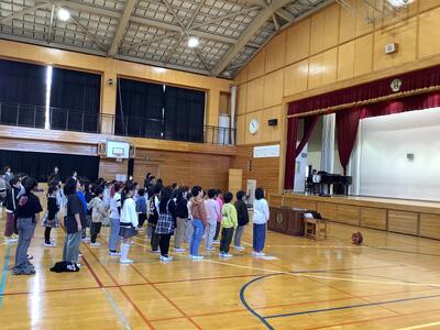 3校時は、全校児童で卒業式の予行練習を行い、流れを確認したり、お別れの言葉を練習したりしました。