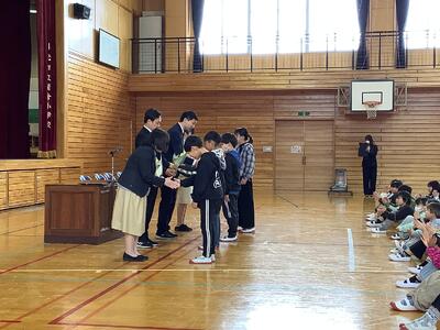 練習の後は、模範児童の表彰伝達を行いました。