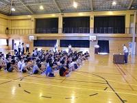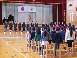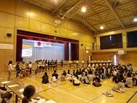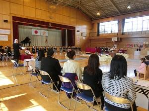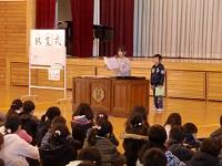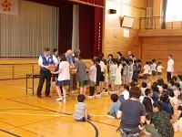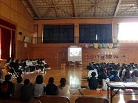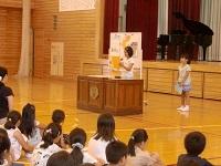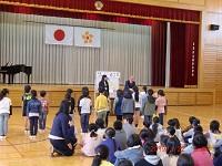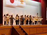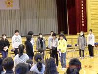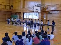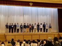 昼休みには音楽集会を行い、全校で「スマイルアゲイン」の合唱、2年生と3年生の日頃の音楽での学習の発表を行いました。全校での合唱がとてもきれいでした。2・3年生の発表もとても工夫されていました。