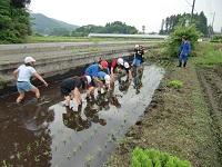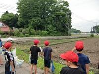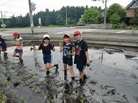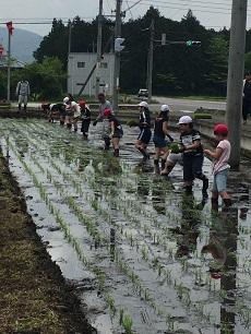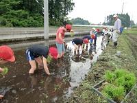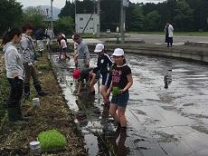 毎年5年生の恒例行事として行っている田植えです。ボランティアの方にご協力いただき、無事に植えることができました。これからどのように育っていくのか、楽しみです。毎年お世話になっている田んぼの先生の福田泰一郎さん、保護者ボランティアのみなさん、大変お世話になりました。