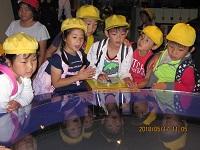 館内見学では、1・2階を自由に行動し楽しみながら身近な科学について体験していました。1階では「生命の科学」や「情報の科学」のコーナーでなど、2階では「暗闇体験」や「ななめの部屋」、「力と運動の国」など、他にもさまざまな箏を見学・体験しました。面白かったのは、体重をリンゴ(250g)何個に変換してくれるもので、どの子も自分はリンゴ何個なのかと確かめていました。