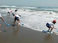 この日の午後の活動は、海浜探検ビンゴという活動でとにかくポストを探して正しい記号を見つけるものです。松林の中で迷子になりそうになり苦労しましたが、楽しく活動できました。その後、海浜丸(遊具)で元気に遊びました。