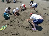 夕食後ナイトハイクに行きました。懐中電灯を頼りに貝拾いをしました。たくさんの貝を拾い、よいお土産になったことと思います。みんなとても疲れたようで消灯前に部屋の明かりが消えていました。