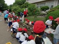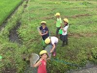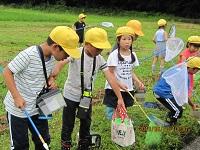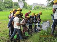 中には、普段はおとなしい女子がかえるを素手で捕まえたり、いつも元気いっぱいな男子がバッタを虫かごに入れるのに悪戦苦闘していたり、と教室では見られない姿がたくさん見られました。