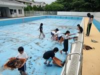 心地よい風を感じながら、冷たい水に入り、意欲的に石の下や水草の近くを夢中で探しました。カワニナやオニヤンマの幼虫等きれいな水にしか生息できない様々な生き物を発見することできました。自分たちの住む猪倉がすばらしい自然の中にあることを実感できる学習となりました。