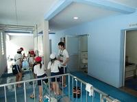 その後、消火器の使い方を学習しました。水消火器を使っての操作の仕方をクラスの代表が実際に練習しました。みんな上手に扱うことができました。