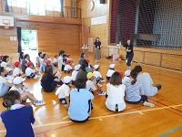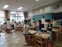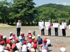 校長先生からは猪倉小で1学期取り組んだあいさつや胸章をつけること、横断時にt止まってくれた運転手に会釈をすることなどの確認の話がありました。また、夏休みにしかできないことを経験してほしいとの話がありました。
