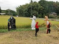 始業式の後、1学期に5・6年生と地域のみなさんで作ったかかしを立ててきました。猪倉小の近くを通ったときにはぜひご覧ください。