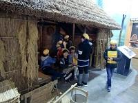 その後、人工的に煙を作り視界がとれない中での避難行動を学びました。前の全く見えない状況でどのように行動したらよいかを体験できたことと思います。