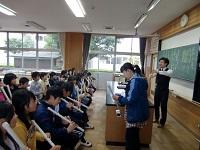 今回は今市消防署の方々を講師として来ていただきました。5月に入っていろいろな学校の訓練を見た中で、猪倉小が避難時間が一番早かったということでした。それから、全国で1年間で3万7千件の火事があり、1000人程度亡くなったこと、そのうち550人ほどが逃げ遅れたためという話もありました。