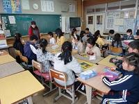 2時間目の休み時間に全校生が校庭に出て、1~6年の縦割り班で遊びを決めて活動しました。今回はドッジビーが人気のようでした。汗をたくさんかき、楽しそうな声が上がっていました。