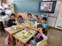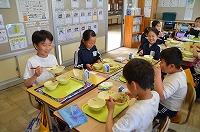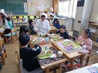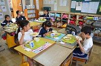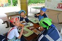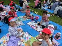 昼食の時には、保護者の方が作っていただいたお弁当を自慢したり比べたり、みんなでおやつ交換などしながら楽しくたべていました。