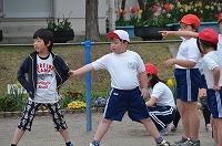 1.2年生の運動会練習第2弾です。初めて外で練習しました。