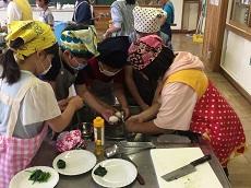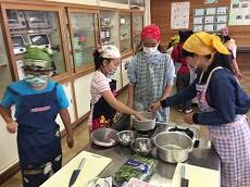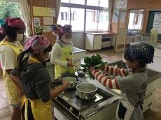 5年生が家庭科の授業で初めて調理実習を行いました。卵とほうれん草を茹でました。