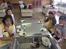 初日のお昼ご飯が多すぎて残してしまった子どもも、少しずつ食べる量が増えてきて、朝食は完食できる子どもが増えてきました。