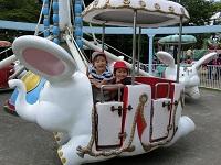 ジェットコースターやロックンロール、観覧車などの乗り物に目をかがやかせ、