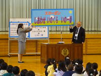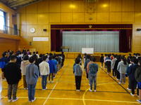 大きなあいさつが体育館に響き渡り、子どもたちも先生たちも笑顔の新年度スタートでした。