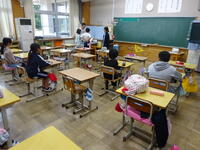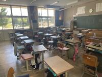警告音が放送で流れた瞬間、どの学級でも児童は素早く机の下に隠れていました。