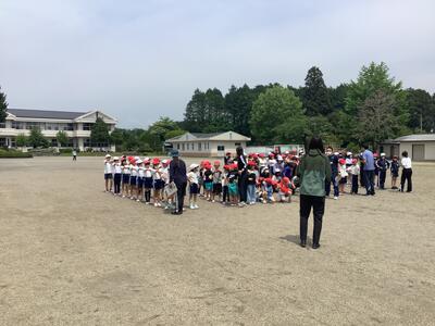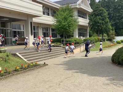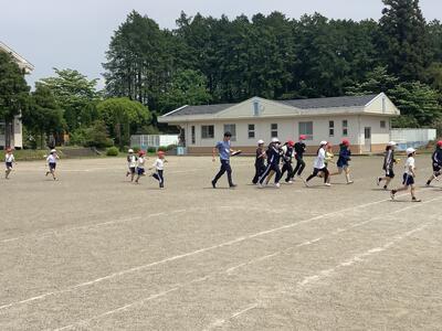 今日は、全校リレーの練習です。並び方や入退場の確認をしました。上級生が下級生の面倒をよくみてくれていました。次回は実際に走ってみることができそうです。